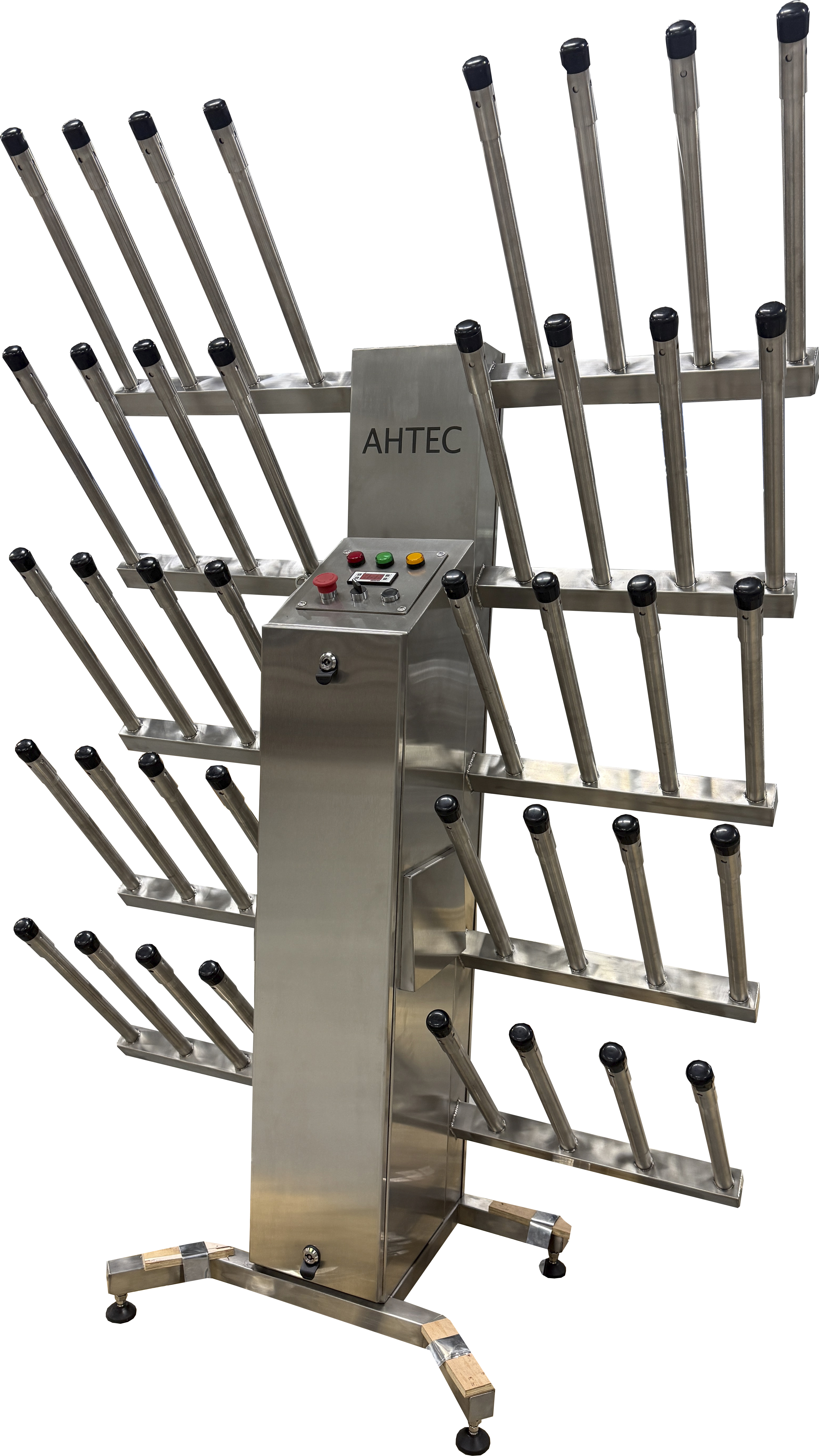 Сушилка оснащена УФ лампами для дезинфекции обуви и клапаном подачи теплого воздуха при наличии обуви.