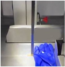 Система безопасности «reach for stop only» представляет собой интеллектуальную систему, для работы которой, оператору необходимы специальные перчатки синего цвета. Когда руки оператора в перчатках попадают в зону срабатывания датчика перед зубьями пильного полотна, система мгновенно срабатывает: пильное полотно немедленно останавливается и остается неподвижным, тем самым снижая возможные травмы